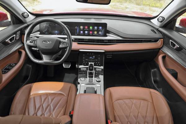 Спорить о дизайне непросто, но образ Chery показался более лаконичным, что-то среднее между Kodiaq и Kia Sorento Prime. Мощную радиаторную решетку ни с чем не спутаешь, а четыре выхлопные трубы стилистически напоминают кроссоверы Porsche. Не слишком ли много патрубков для семейной машины? Сейчас и проверим.