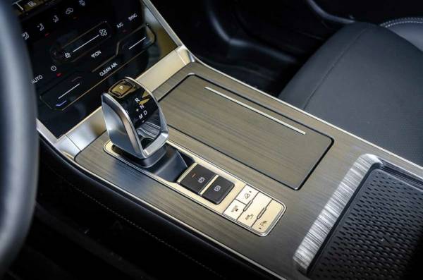 Круто, что черный глянцевый пластик заменили пластиковыми вставками под фрезерованный металл по всему салону. И выглядит солиднее, и меньше царапается. Джойстик-селектор коробки передач оставили тот же, но блок клавиш под ним продлили. Подстаканники поменяли местами с беспроводной зарядкой.