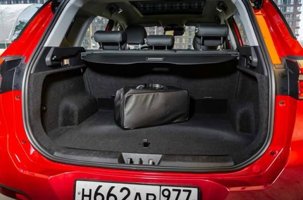 На простор жаловаться не приходится. Руль регулируется в двух плоскостях. Кресла из экокожи и с электронными регулировками удобны. Разве что длины подушки немного не хватает. Сзади почти королевский запас места для ног и головы. Плюс большая панорамная крыша существенно добавляет света и воздуха. Багажник не может похвастаться рекордными объемами — 475 литров и 1500 при сложенных в пол креслах второго ряда.