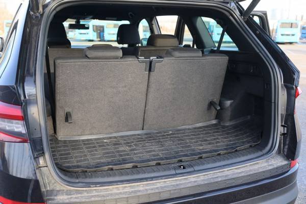 Отчасти такое различие продиктовано нюансами установки заднего дивана. В 7‑местном варианте Skoda обладает более вместительным багажником, но просторным его все равно не назвать. И если вы куда-то едете большой компанией, то места для вещей в любом случае не хватит, понадобится бокс на крыше. Но третий ряд у Kodiaq пострадал сильно. А вот за что инженерам из Млада-Болеслава надо сказать спасибо, так это за то, что даже в 7‑местной версии они нашли способ разместить в салоне пусть узенькую, но докатку. Вот только остается открытым вопрос, куда девать полноразмерное пробитое колесо, если по дороге понадобилась замена. В гибриде за третьим рядом остается 187 литров, что также сложно назвать достаточным объемом, а под полом скрывается компрессор и баллончик с герметиком. Запасного колеса у Evolute нет.