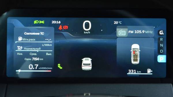 В просторном салоне везде мягкий пластик и эко-кожа, но некий диссонанс вносит центральный экран. Похоже, дизайнер в последний момент спохватился и воткнул угловатый прямоугольный планшет, который среди плавных линий панели торчит чужеродным элементом. Но хоть тянуться к нему не нужно, правда, хочется развернуть немного к себе. Цифровая приборная панель выглядит так, будто классические приборы убрали из-под козырька и на образовавшееся пустое место положили еще один планшет.
