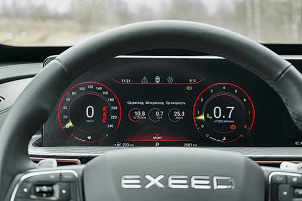 Цифровая панель приборов и экран мультимедиа под единым стеклом резко повышают статус Exeed.