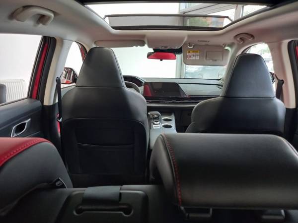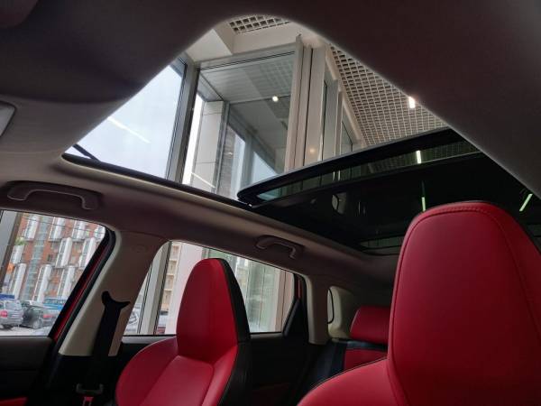 Автомобиль, представленный в автосалоне, также может похвастаться стеклянной панорамной крышей с электролюком, которая добавляет ощущения свободного пространства в салоне. Сразу стоит сказать, что контрастная отделка интерьера может прийтись не всем по вкусу: красный цвет для кого-то явно может показаться излише ярким.