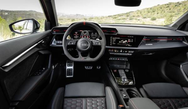В стандартное оснащение Audi RS3 входят светодиодные фары, электронная приборная панель, раздельный «климат», аудиосистема Bang & Olufsen, камера зданего вида и система автоматической парковки. В перечне опций — адаптивная подвеска (87 000 рублей), увеличенный с 250 до 290 км/ч скоростной лимит (162 000 рублей) и карбоно-керамические тормозные диски (406 000 рублей).