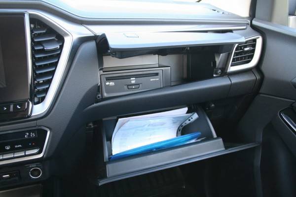 А вот D-Max разочаровал. Возможно, у меня были завышенные ожидания относительно нового поколения пикапа, в котором создатели особое внимание уделили интерьеру. Но на фоне «китайца» японская модель выглядит простовато. Нет, к механическому ручнику и классической тросовой кулисе АКП у меня претензий нет — для грузовика так даже удобнее и надежнее, а сколько продержатся электрические актуаторы стояночного тормоза GWM Poer в нашей соли и грязи, неизвестно. Вопрос в другом. Понятно, что пикап — модель утилитарная, однако оправдать этим блеклый 7‑дюймовый экран мультимедиа с невнятной графикой и неудобный бортовой компьютер, где все сбито в кучу, я лично для себя не смог. Да, и к разговору об утилитарности: объясните, зачем здесь DVD-проигрыватель, который «съел» половину верхнего бардачка? Чтобы вахтовики могли коротать время за просмотром фильмов? Но даже если и так, вряд ли они найдут свежий контент: возможно, в Японии такой формат медианосителей еще актуален, но в России DVD давно заменили флешки с пиратскими записями, а также мобильные телефоны с соцсетями, где есть все то же самое, только онлайн. Кстати, разъемов USB для подзарядки гаджетов здесь всего два — один спереди и один сзади.