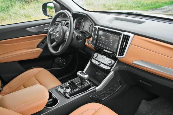 Такому интерьеру, как у Poer, позавидуют владельцы не только пикапов, но и дорогих рамных внедорожников японских брендов. 9‑дюймовый экран мультимедиа с хорошей графикой и высоким разрешением, отличная приборная панель с крупными аналоговыми шкалами и информативным экраном бортового компьютера, электронный селектор 8‑ступенчатого автомата, электромеханический ручник с автохолдом, электроприводы регулировки передних сидений, куча разъемов USB (включая один возле зеркала заднего вида) и вишенка на торте — суперпросторный, по меркам пикапа, задний ряд. При этом прокололись китайцы на мелочи — не сделали рулевую колонку регулируемой по вылету да использовали в отделке довольно бюджетный кожзам. Но все равно зачет. Вертикальная посадка позволяет удобно устроиться за рулем и без вытягивания руля, а кожзам, хоть и не радует тактильно, но смотрится красиво, не пахнет и удобен в уборке.