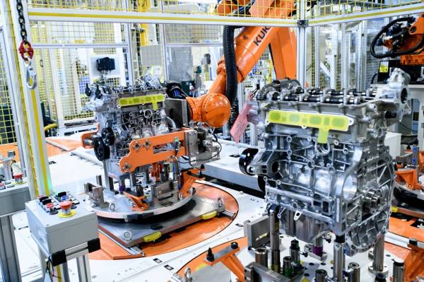 Производственная линия максимально автоматизирована. Она имеет пять манипуляторов, выполняющих самые сложные операции. Все выпущенные моторы будут проходить специальный тест, имитирующий их работу в реальных условиях. И только после этого силовые агрегаты будут поступать на склад готовой продукции, чтобы затем отправиться на завод по сборке автомобилей.