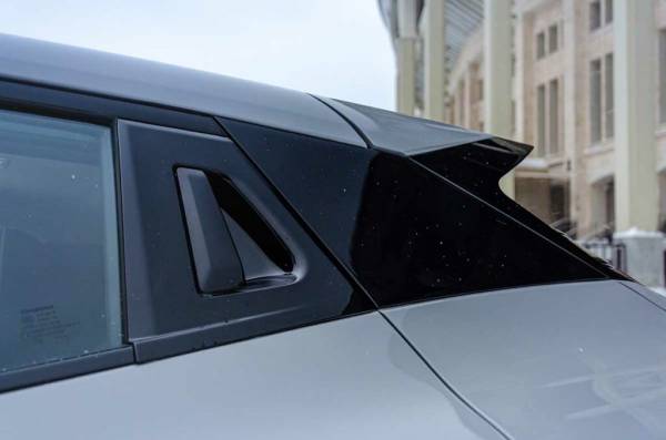 Впрочем, помимо передней оптики и бампера, у UNI-T множество других классных дизайнерских фишек. Выдвижные наружные ручки передних дверей крыльями откидываются в стороны, стоит только разблокировать центральный замок. А вот ручки задних дверей придется поискать. Они спрятаны в верхней части дверей в черной полосе, призванной создать эффект парящей крыши. Да-да, так же, как у Toyota C-HR.