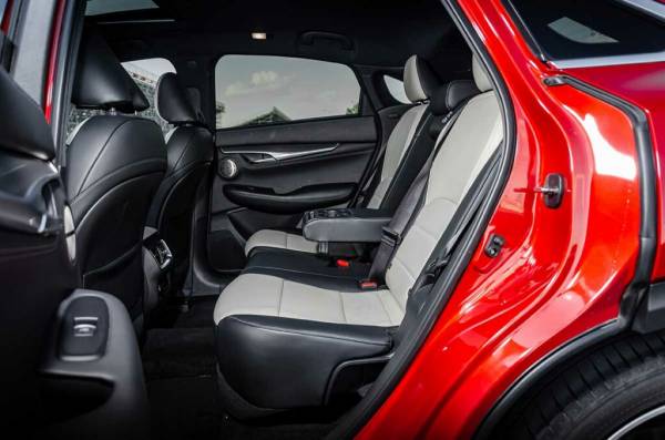 Как и в случае с кроссовером QX50, с которым дебютировал мотор VC-Turbo, не могу сказать, что попытка японцев продлить жизнь ДВС такой разработкой серьезным образом отразилась на экономии топлива. Как ни старайся, а меньше 8 литров на 100 км средний расход 95‑го не падает. Да, QX55 очень старается быть малоежкой в эко-режиме, но он напрямую влияет на комфорт и даже безопасность вождения: правая педаль максимально демпфируется, а ускорение впору измерять календарем. Зато в плане динамики и резких ускорений в спортивном режиме мотор хорош! Все 249 «лошадок» бодро везут кросс-хетч сквозь городской поток. К тому же можно «разблокировать» еще 23 «лошадки», которые не прошли фильтрацию налогового режима России.
