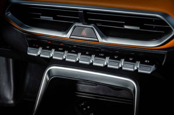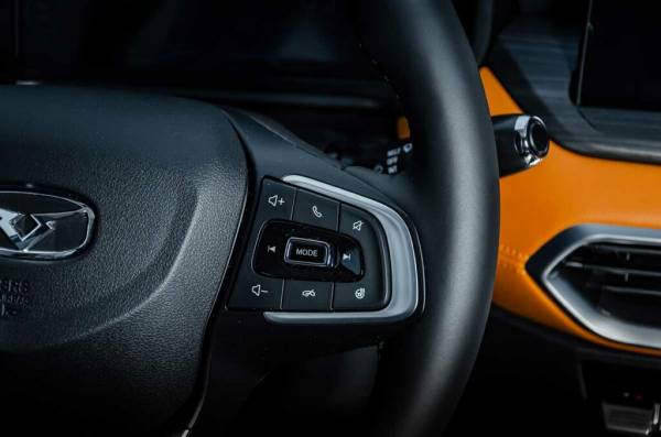 Салон не перегружен тачскринами. Все основные органы управления расположены удобно. Интерьер разбавлен ярко-оранжевыми акцентными вставками, а имитация под дерево на дверных панелях выглядит качественно.