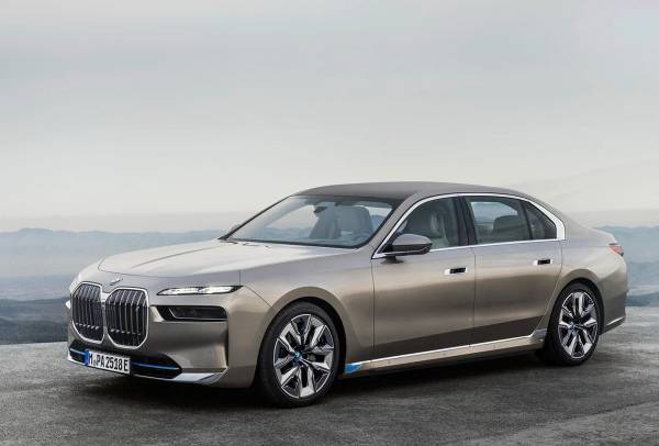 Седьмое поколение «семерки» BMW стартовало в прошлом году. Одновременно была представлена и электрическая версия i7, которая отличается от «семерок» с двигателями внутреннего сгорания только мелким декором, шильдиками и формой заднего бампера. В стандарте седан оснащен адаптивной пневматической подвеской, а за доплату предлагаются адаптивный рулевой механизм и активные стабилизаторы поперечной устойчивости, которые работают от 48‑вольтовой электросети. Колеса диаметром от 19 до 22 дюймов. Имеются пакеты M Sport и M Sport Pro с более агрессивным обвесом, иной настройкой подвески и усиленными тормозами. Кресла в базовой комплектации имеют обивку Veganza из высококачественного кожзама с перфорацией. В качестве опции — натуральная кожа или комбинация кожи с шерстяной тканью. В стандарте также четырехзонный климат-контроль, подогрев сидений и подлокотников (!), панорамная крыша и сервопривод дверей. Электрический BMW i7 доступен в одной версии xDrive60. Мощность переднего электромотора — 258 сил, а заднего — 313, при этом передаточные отношения редукторов у них различаются. Совокупная отдача — 544 л. с. Электрическая система работает с напряжением 376 вольт, расположенная под полом салона тяговая батарея емкостью 101,7 кВт·ч обеспечивает дальность хода 590 км по циклу WLTP. Седан снаряженной массой 2640 кг может разогнаться до 100 км/ч за 4,7 с, максимальная скорость ограничена на отметке 240 км/ч.