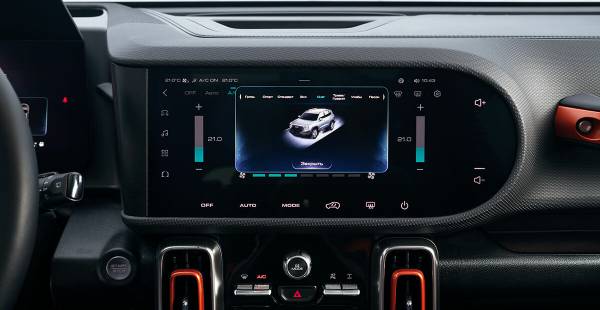А что же блокировка? И одной из приятных мелочей, которой уж и не ждешь в китайских машинах, где все функции — от регулировки кресел до изменения направления потоков воздуха — обычно включаются через меню центрального дисплея, стала физическая клавиша включения блокировки. Причем в Dargo X она электромеханическая, зажимного типа. При ее активации прижимная пластина, в обычном положении отжатая пружиной, с помощью электромагнитной катушки зажимает сателлиты заднего дифференциала, превращая полуоси в неразрывную целую ось, которая вращает колеса с одинаковой скоростью, не подтормаживая одно из них. Специально застрял на снежном подъеме холма, съехав с трассы. Включаю режим «Ухабы» (можно любой из внедорожных), нажимаю клавишу включения блокировки, и автомобиль продвигается вперед еще на несколько метров, но в итоге застревает. Назад с блокировкой выбираюсь самостоятельно — без нее пришлось бы ждать помощи либо окапываться, но то и другое заняло бы дополнительное время. Кстати, если забудешь эту опцию отключить, на скорости 38 км/ч она выключится автоматически.