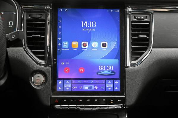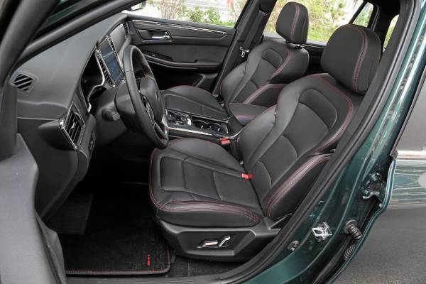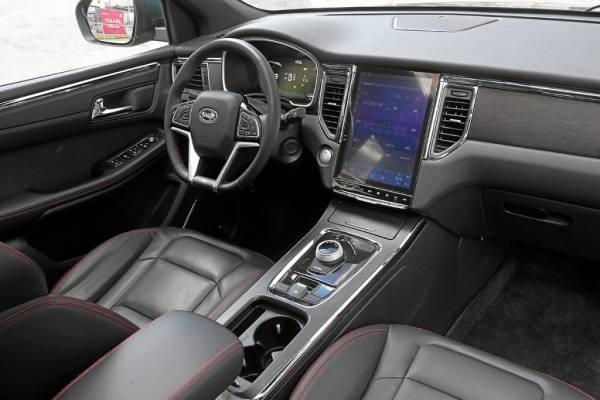 Так, открываем водительскую дверь… Ну, да, вот она, табличка от ООО «Автотор-Балтпром». Почти сразу выясняется, что вся эта машина прямо-таки соткана из контрастов. Стильный интерьер: накладки на порогах под алюминий с логотипом SWM, черный потолок и качественный черный кожзам кресел, красная прострочка и итальянские флажки повсюду, мягкая фактурная отделка верха торпедо и дверей, нарядная шайба селектора АКП, симпатичный пульт управления стеклами и зеркалами, огромный вертикальный прямоугольник дисплея медиасистемы, приятная на ощупь перфорированная и гладкая кожа на руле.