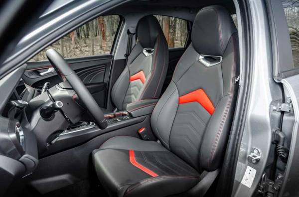 Сами по себе передние кресла неплохи. Спортивный вид, конечно, смотрится иронично. Но спинка и подушка вполне удачно спрофилированы. Удивляет климат-контроль. Вместо стандартной шкалы с градусами у него гипотетические ступени, в которых приходится разбираться буквально на ощупь. Зато аналоговая приборная панель вполне легко читается, а медиацентр с широким экраном поддерживает Apple CarPlay и Android Auto.