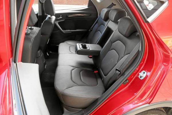 Сзади подобных примет экономии тоже немного. В торце центральной консоли одиноко красуется USB-вход — у пассажиров нет дефлекторов вентиляции. Однако в остальном все в полном порядке: кожзам сидений недорогой, но и совсем уж дешевым не выглядит — возможно, из-за перфорированных вставок. В дверях удачно смотрятся узкие полоски хрома и все того же псевдо-карбона. На диване имеется широкий центральный подлокотник с подстаканниками. Ручки над дверями оснащены микролифтом, на стойках кузова предусмотрены крючки для одежды. Дверные подлокотники мягкие, карманы тоже небольшие, но, как и спереди, с подбутыльниками, к тому же кармашки есть и в спинках передних сидений.