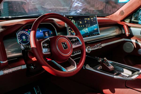 На презентации впервые показали интерьер модели, который прежде можно было увидеть только частично на шпионских снимках. Но подробностей производитель не раскрыл, объявив лишь о высочайшем уровне комфорта и люксовой аудиосистеме с 16-ю динамиками. Тем не менее, на фотографии видно, что несмотря на большой сенсорный экран, под ним на торпедо много физических кнопок. Здесь их даже больше, чем в Tank 500! Похоже китайцы наигрались с сенсорными историями: по крайней мере в премиум-сегменте покупатель хочет видеть привычные органы управления, а не их визуальные аналоги.