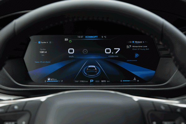 С наступлением темноты удалось оценить фары. К яркости полностью светодиодной оптики вопросов нет, но резко прочерченная граница между освещенной и неосвещенной зонами, из-за которой теряешь контроль над обочиной и плохо оцениваешь дорожный профиль в перспективе, делает езду менее комфортной. Выручает дальний свет: с ним едешь как днем. Также удивило отсутствие системы удержания в полосе: в меню медиацентра такой пункт имеется, но в нем же есть строчка, указывающая на то, что система эта лишь предупреждает о пересечении разметки, но в управление не вмешивается. Конечно, в городских условиях особой пользы от функция подруливания нет, скорее наоборот. Но когда едешь по хорошей дороге на дальняк, в сочетании с адаптивным «круизом» — это весьма полезная штука. Здесь же функционал «автопилота» получается усеченным.