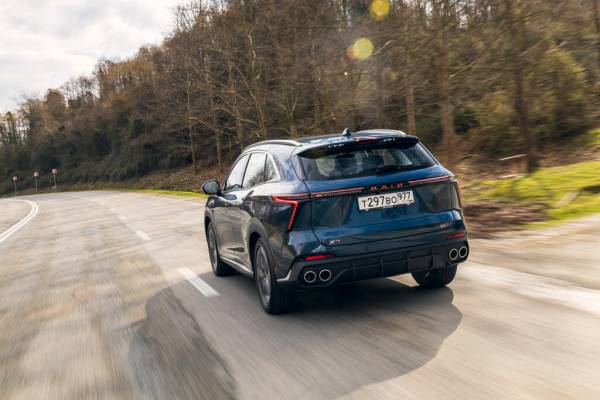 Зимой большому и тяжелому (снаряжения масса — почти 1,8 тонны) переднеприводному кроссоверу будет непросто, но на сухом асфальте и гравийке отсутствие полного привода не доставило нам никаких проблем. Двухлитровый турбомотор мощностью 238 л. с. в паре с 7‑ступенчатым роботом Getrag и энергоемкая подвеска позволяли держать хороший темп на прямой, но ощутимые крены и невнятное усилие на руле вынуждали притормаживать перед поворотом раньше, чем того хотелось от столь динамичного автомобиля. Выбор режима вождения «Спорт» (для этого есть отдельная кнопка на руле — удобно) делают машину более собранной и отзывчивой, но кардинально ситуацию не меняют. На серпантинах не хватало подрулевых лепестков или просто возможности перевести коробку в ручной режим: его здесь нет, хотя у других отпрысков дома Сhery, оснащаемых аналогичной трансмиссией, такой режим имеется. Благо тормоза у X7 Kunlun работают отлично и не перегрелись даже после активной езды по горам.