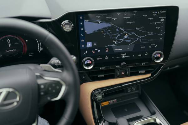 Даже новый Lexus LX, который был представлен миру гораздо позже NX, на фоне компактного кроссовера смотрится морально устаревшим. Чего стоит один 14-дюймовый «телевизор» медиацентра – такого нет ни у кого в линейке Lexus! И даже в базе здесь идет экран диагональю 9,8 дюймов. Графика системы смотрится простовато, но свою функцию она выполняет отлично и без красиво отрисованного интерфейса. Главное – японцы не наступили на те же грабли, что и другие автопроизводители, решившие перевести физические кнопки на сенсорный дисплей. Здесь такой переход не вызывает страданий. Управление «климатом» доступно прямо с главного экрана в любой момент времени – переключаться никуда не нужно. При этом крутилки регулировки температуры остались – их приделали прямо на экран. Как и физический регулятор громкости – он расположился под дисплеем медиацентра.
