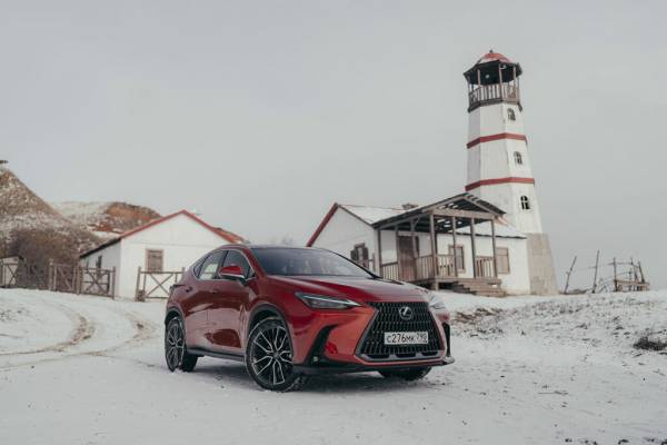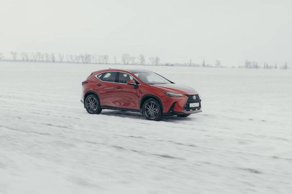 Чтобы разминуться со встречной машиной – нужно уходить в сторону и нырять в сугроб. Но здесь как раз волноваться не о чем: главное не бросать газ и машина вывезет. Хотя новый Lexus NX и не получил крутой полный привод от Toyota RAV4 – с двумя муфтами на задней оси, и стандартная трансмиссия платформы GA-K справляется с такой задачей отлично. Даже когда мы съехали на берег Азовского моря, чтобы сделать эффектные кадры буксующего в снегу автомобиля, специально засадить кроссовер не удалось. Любые попытки застрять терпели фиаско: при пробуксовке электроника тут же подключала имитацию блокировки дифференциала и, похрустывая тормозами, машина продолжала двигаться вперед. Так что техничка в виде рамного Lexus GX осталась без работы.