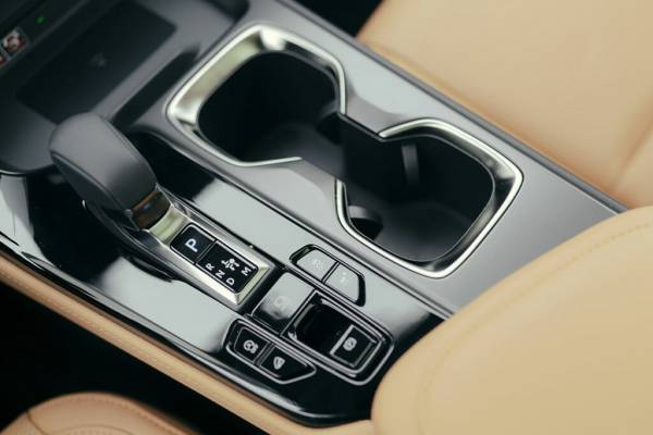 Кнопки на руле сделаны сенсорными, причем их можно перепрограммировать. А все манипуляции с кнопками дублируются на экране проекционного дисплея – отвлекаться от дороги не нужно. Рычаг переключения передач – электронный, с защитой от случайного срабатывания: чтобы переключить передачу селектор нужно подвинуть вбок. Здесь же под рукой управление режимами вождения и отдельная кнопка с «елочкой» для активации системы помощи на бездорожье, которая, как я уже успел убедиться, отлично работает. На широкой центральной консоли, избавившейся от бесполезного тачпада, нашлось место для больших подстаканников, беспроводной зарядки и двух разъемов USB – классического Type-A и нового Type-C. А вот у задних пассажиров такого выбора нет – там только пара 15-ваттных Type-C для быстрой зарядки.
