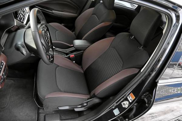 Кресла удобные, а их профиль оптимален, но боковая поддержка плохо удерживает в поворотах. Подогрева сидений не предусмотрено — хорошо, что обивка из ткани.