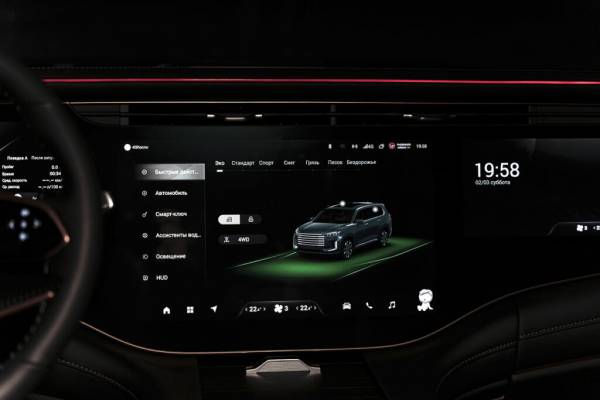 И еще требуется новая прошивка для медиацентра, которая позволит раз и навсегда заблокировать навязчивую систему слежения за водителем. Сейчас это приходится делать при каждом запуске двигателя, иначе виртуальная надсмотрщица, чей электронный глаз глядит на водителя с левой стойки, будет реагировать на каждый поворот головы, советуя не отвлекаться от дороги. К слову, чтобы добраться до настроек электронных помощников, нужно не только углубиться в меню, но и потратить время на поиски нужной иконки: подписаны они бегущей строкой, так как изначально место было зарезервировано под иероглифы. И в этом китайский «Гиперскрин» проигрывает оригинальному. Можно повторить идею, поставить такие же экраны высокого разрешения и оснастить систему мощным процессором (в Exeed VX используется 8‑ядерный Qualcomm Snapdragon 8155 с 16 Гб оперативной памяти), но если интерфейс медиацентра не будет понятным и удобным, покупатель этого не оценит: вау-эффект быстро пройдет, а осадочек останется…