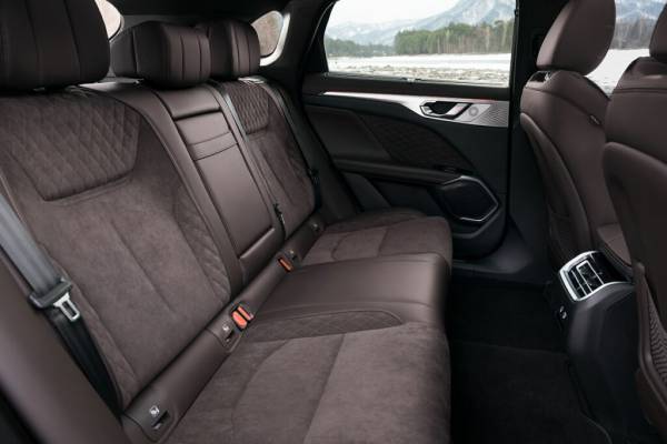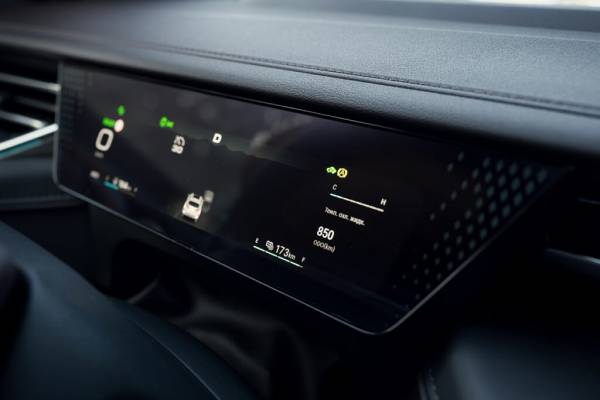 Внутри — все как мы привыкли видеть в современных дорогих китайских автомобилях: материалы если не шикарные, то вполне качественные. Сиденья отделаны алькантарой, что вкупе с правильной конструкцией кресел значительно улучшает фиксацию тела водителя и переднего пассажира. Богатые регулировки включают выдвижную подколенную подушку и изменяемую поясничную опору. Проветриться можно, включив вентиляцию сидений. Пять программ массажа действительно работают, и это приятная составляющая удобства передних пассажиров. Задний диван обит экокожей вполне достойного качества. Руль — на любителя, относительно тонкий в сравнении с другими китайскими марками, но по мне, так в самый раз. Приборная панель кажется непривычно компактной, особенно по сравнению с 14,6‑дюймовым дисплеем мультимедийной системы. Показаний на приборке достаточно, но пиктограммы несколько мелковаты. Зато проекция с дополненной реальностью на переднее стекло этот недостаток с лихвой компенсирует.
