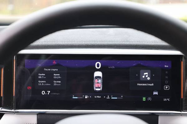 А вот интерьер оставил равнодушным, а местами даже разочаровал. Огромный центральный экран только в начале кажется чем-то выдающимся, но пользоваться им неудобно. Панель приборов, которая должна давать водителю всю необходимую информацию, сюда словно поставили в последний момент, изначально просто забыв о ней. Все цифры на ней формально есть, но считывание их затруднено. А вечером еще и мешают вертикальные столбики амбиентной подсветки. Так что чувствуешь себя скорее на дискотеке, чем за рулем средства повышенной опасности.