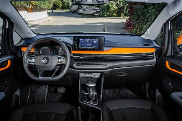 Но если внешний вид заставляет задуматься, кем себя считать, имея такую машину: домохозяйкой или дедулей, то салон дает однозначное ощущение современной молодежной машины, пусть и недорогой. Торпедо синего цвета — отсыл к немецкому премиуму 90‑х. Оранжевые вставки ассоциируются с какими-то игрушками. Разнофактурный пластик в дверных картах и всякие узоры — тоже молодят салон.