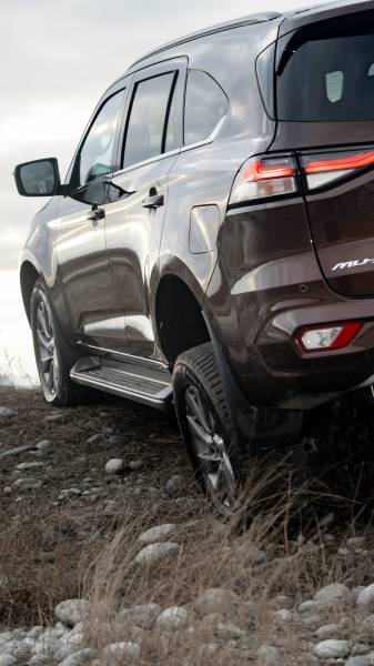 На тяжелом оффроуде можно активировать понижайку и заблокировать задний дифференциал. Но, как показала практика, делать это не обязательно: электронные системы помощи на бездорожье позволяют проехать там, где в «аналоговом» режиме машина уже не справляется. В особенности это касается диагонального вывешивания: электронная имитация блокировки дифференциала решает вопрос эффективнее блокировки физической. Кстати, на «диагоналке» дверь багажника открывалась и закрывалась без проблем, что говорит о высокой жёсткости рамы.