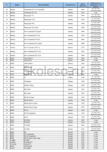 Ниже мы приводим полный перечень автомобилей, которые облагаются налогом на роскошь в 2024 году: