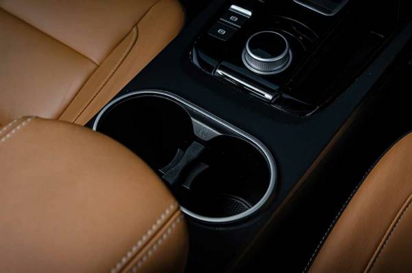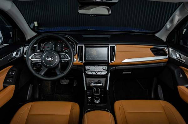 Внутри все солидно. Нет ощущения, что попал за руль коммерческой техники, созданной для перевозки грузов по внедорожью. Коричневая экокожа, стильная комбинация из черного и серого пластика. Широкий тачскрин медиацентра. Да, но тактильно материалы не так восторгают, как визуально. Жесткого пластика здесь много. Хотя подогнано все аккуратно.