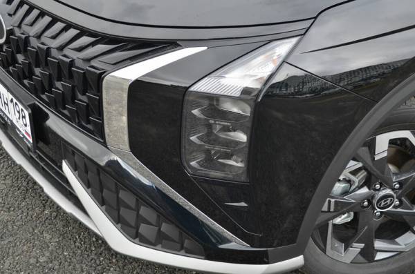 Есть автомобили, которые живьем выглядят не так, как на фото. С Hyundai Musafa как раз такая история. Не в смысле, что в реальности он выглядит хуже или лучше. Нет, в реальности он выглядит точно так же, как на фотографии: вполне современно и даже в некоторой степени оригинально, взять хотя бы «закольцованные» задние фонари. Но оценить по фото размеры модели, если рядом нет какого-то эталона-мерила, вы не сможете. И первое впечатление при очном знакомстве с новинкой, которая на картинках с определенных ракурсов действительно похожа на «Палисейд» — это то, что она довольно компактная. И это странно. Ведь новинка аж на 17,5 см длиннее экс бестселлера российского рынка кроссоверов, при этом по ширине она практически догнала, а по высоте даже обогнала «Туссан»! Но из-за огромных колесных арок, в которых «тонут» 18‑дюймовые колеса, и скромного дорожного просвета, выглядит этот кроссовер как «Крета» на максималках…