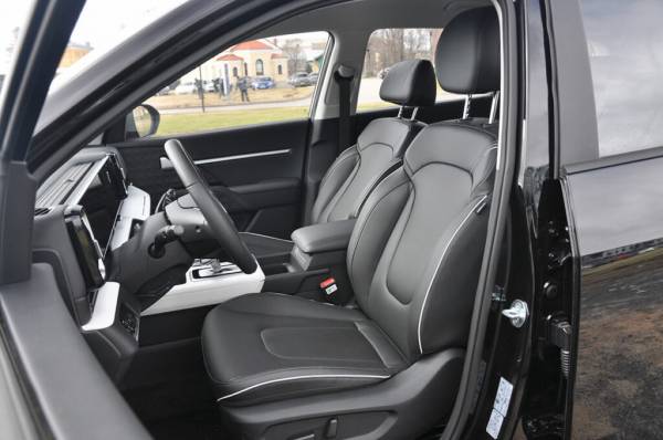 Для управления температурой и потоками воздуха в салоне не нужно лезть в меню медиацентра: под центральным экраном сделан отдельный блок с удобными крутилками и физическими кнопками. Вот только в нашей комплектации это был обычный кондиционер, хотя на китайском рынке доступен и климат-контроль — для машины за 3,7 млн довольно скромно. Зато есть подогревы передних сидений — они включаются отдельными (сенсорными) кнопками на центральной консоли. На втором ряду подогревов сидений нет: только дефлекторы обдува в торце центральной консоли. Нет здесь и откидного подлокотника с подстаканниками. Но места достаточно даже для рослых седоков, а в спинку кресла переднего пассажира вмонтировано крепление для планшета: ребенок сможет посмотреть мультики в дороге. Эту же спинку можно сложить горизонтально, например, для перевозки длинномеров. Сидящий справа задний пассажир также может использовать откинутую спинку кресла как подставку для ног, но… здесь нужно договариваться с водителем — захочет ли он видеть возле себя вашу обувь.