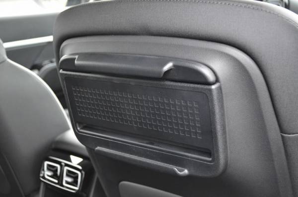 На втором ряду достаточно места в ногах и много воздуха над головой. На спинке кресла переднего пассажира есть крепление для планшета.