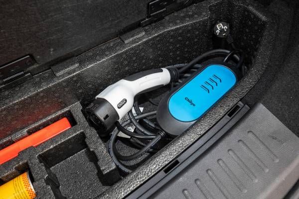 Только на электрической тяге обещают пробег 75 км, но что происходит на деле: когда едешь в гору, индикатор на приборке показывает, что электричество расходуется значительно быстрее, а при движении в обратном направлении, особенно в 3‑м режиме рекуперации, запас электрического хода возобновляется, и можно преодолеть это расстояние без подключения ДВС. Зимой в городском трафике достичь таких показателей не получится. На прогрев систем и самой высоковольтной батареи тратится энергия, так что если у вас нет теплого паркинга, на помощь придет традиционный двигатель внутреннего сгорания. 12‑вольтовый аккумулятор в е+ переехал из подкапотного пространства в левую часть багажного отделения. Когда автомобиль долго не используется, он может подзаряжаться от высоковольтной батареи. А вот зарядка самой основной батареи займет 2,5 часа на зарядной станции мощностью 6,5 кВт. Восполнять энергию на быстрой зарядной станции нельзя. Но зато эту операцию можно проделать и дома, подсоединившись к розетке 220 В с обязательным заземлением, а займет это 7,5 часа.