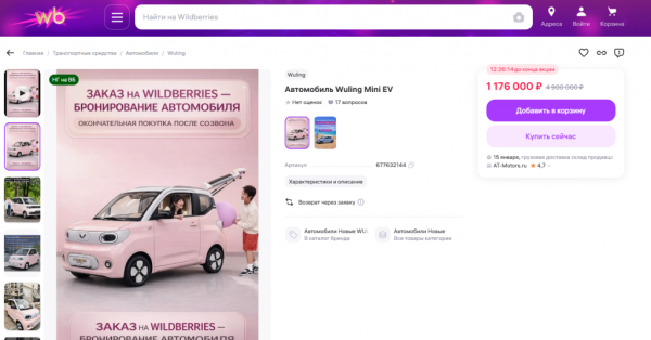 Новый электромобиль за миллион: на Wildberries начали продавать Wuling Mini EV