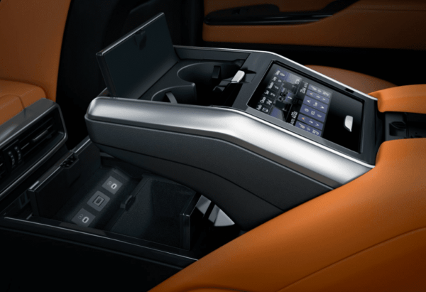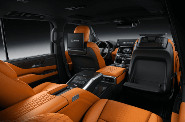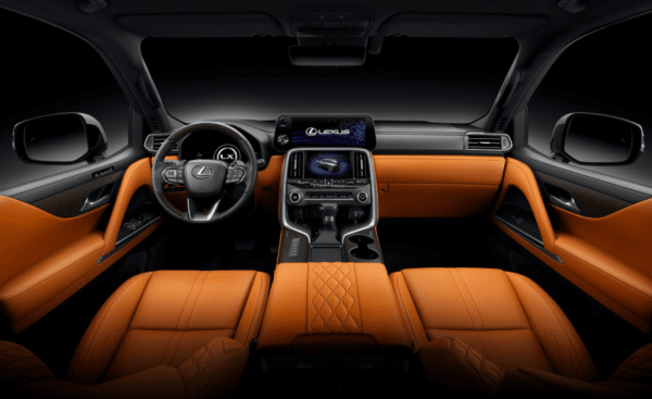 Оформление интерьера нового LX полностью переработали. Расположение кнопок и органов управление улучшено с точки зрения эргономики. Качество материалов значительно выше. Из гаджетов стоит отметить три экрана спереди — это цифровой щиток приборов, 12,3-дюймовый тачскрин медиацентра и 7-дюймовый сенсорный дисплей под ним.