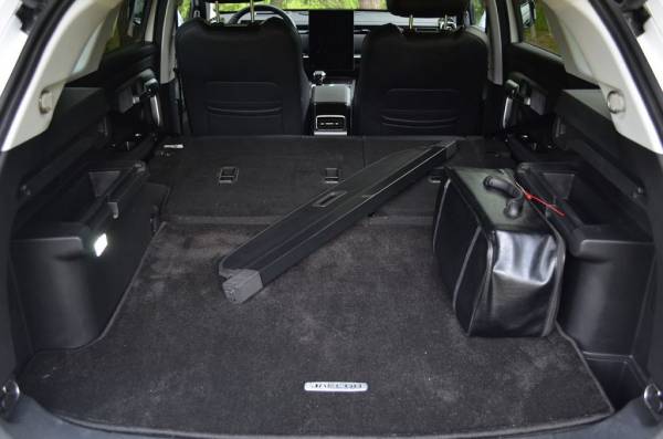 Сложенная спинка заднего дивана образует ровную площадку с багажником. В путешествии здесь вполне можно устроиться на ночлег.