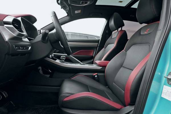 Бордовые вставки аккуратно разбросаны по всему салону Geely Coolray и здорово его украшают.