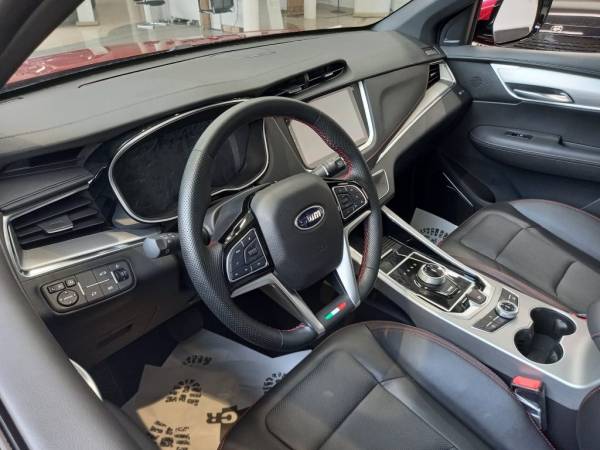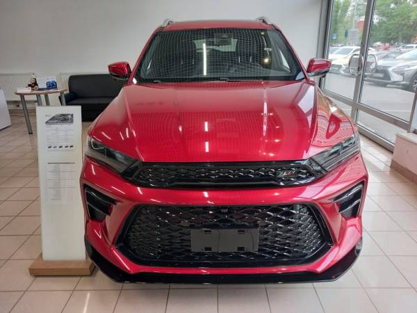 В шоуруме у дилера нашел кроссовер SWM G01F в стильном красном цвете. Автомобиль со спортивными «акцентами» доступен в двух комплектациях, с безальтернативной связкой из 1,5-литрового турбированного бензинового двигателя мощностью 139 л. с. (212 Нм) и 7-ступенчатой роботизированной коробкой передач DCT.