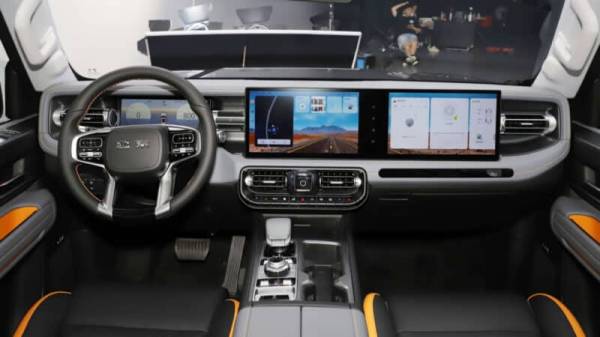 В салоне установлено три больших цифровых дисплея. Водителю положена 10,25-дюймовая цифровая приборная панель, один сенсорный дисплей диагональю 12,8 дюйма — экран управления информационно-развлекательной системой, а еще один, той же диагонали — это тачскрин для переднего пассажира. Система работает на чипе Qualcomm Snapdragon 8155, которая также поддерживает голосовой помощник на базе ИИ.