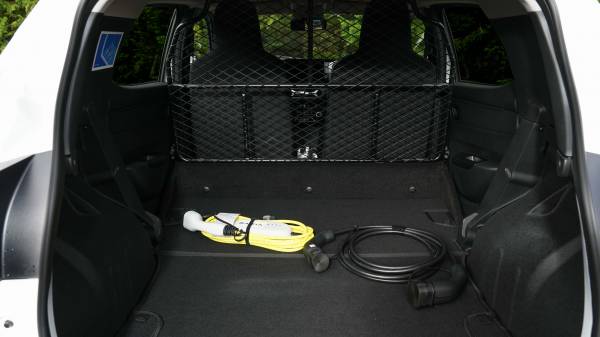 Это новый Dacia Spring «Cargo» с полностью электрической силовой установкой, и, внимание, автомобиль позиционируется как коммерческий фургон (!). Фургон без задних сидений, с сетчатой перегородкой, отделяющей место водителя и переднего пассажира от грузового отсека. Автомобиль предложен с единственным вариантом силового агрегата, в единственном белом окрасе кузова, со штампованными дисками с простенькими колпаками. Этакая «маленькая рабочая лошадка без излишеств».