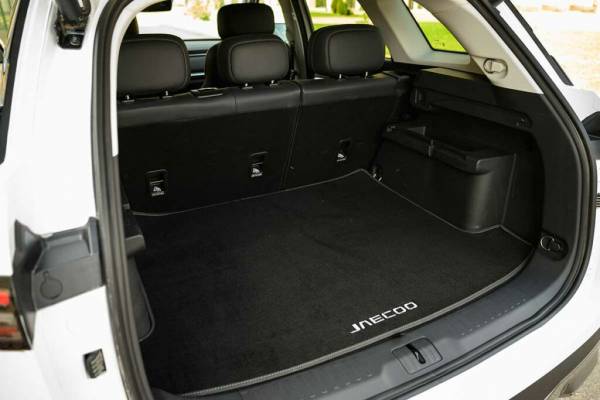 Однако дело тут не только в настройках двигателя: хотя Jaecoo J7 построен на том же шасси, что и Omoda C5, он заметно крупнее и тяжелее. К тому же прибавка мощности должна ощущаться в основном на высоких скоростях или когда двигатель раскручен, а при ускорениях с малых оборотов «вывозит» крутящий момент, который здесь остался прежним. Словом, Jaecoo J7 — это не про спорт, а про комфорт. И с комфортом здесь полный порядок: несмотря на низкопрофильную резину (18 дюймов в «базе» и 19 — в «топе»), быстрая езда по каменистым горным перевалам не заставила пассажиров страдать даже на заднем ряду. Сзади здесь вообще хорошо: высокая ровная крыша, большой запас в ногах, почти незаметная ступенька центрального тоннеля и регулируемая по углу наклона спинка дивана. Во время «скачек» по горам напрягал только бренчащий короб шторки багажника — при ее раскрытии шум сразу ушел.