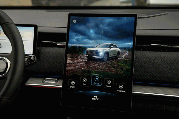 Забавных надписей, вроде «режим забвения» (теперь он называется «телефон в машине»), в меню медиацентра уже не было. Но, например, несоответствие озвучки режимов вождения, когда система говорит, что включен «Стандартный режим», а на экране написано «Комфортный», осталось. А еще при выборе режима «Грязь» (он, как и другие внедорожные пресеты, есть только на полноприводных версиях) на панели приборов появляется надпись «вошел в мутный режим». Есть и другие «перлы» перевода, вроде «индукционной двери багажника». Но все это обещают исправить в новой прошивке, которая к тому моменту, как вы прочитаете эту статью, уже должна выйти. В ней же планируется добавить Android Auto, и владельцы смартфонов на этой ОС смогут выводить карту навигации на вертикальный 14,8‑дюймовый дисплей — так же как владельцы «айфонов». Ну а купившие Jaecoo J7 со старой прошивкой смогут бесплатно обновить ее у дилера.