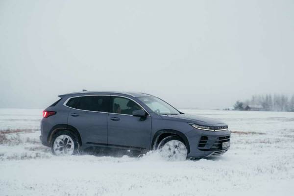Во всю ширину лобового стекла раскинулись поля и леса Рузского района. В заднем зеркале такой же вид. Городской компактный кроссовер с символическим по меркам SUV дорожным просветом почти в 19 сантиметров и неплохой геометрией уверенно пробирается по занесенной снегом проселочной дороге. Нешипованные и абсолютно шоссейные «Пирелли» бороздят снег, купаются в лужах и цепляются за лед. Даже небольшой уклон градусов в 25–30 «эл-иксу» под силу взять с места. Словом, если зимой надо спрыгнуть с большой дороги, чтобы добраться до дачи, маленький полноприводной Exeed без проблем справляется с такой задачей.