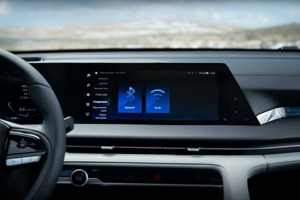 В салоне изменений еще больше. Здесь появилась яркая проекция на лобовое стекло и единая мультимедийная панель с двумя 12,3‑дюймовыми дисплеями. На экран приборки можно вывести удобные аналоговые шкалы, что для «китайцев» редкость. Но при этом меню приборной панели нужно читать на английском: русскоязычную прошивку производитель обещает выкатить в начале следующего года. Медиацентр, в отличие от панели приборов, полностью русифицирован. В меню можно менять настройки усилия на руле, отключать водительских ассистентов, а также управлять климат-контролем. Здесь есть Apple CarPlay, а Android Auto должны добавить в новой прошивке.