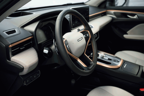 Но если внешние отличия касаются всех вариантов кроссовера, то изменения внутри полностью смогут оценить только покупатели новой топовой версии Tech Plus, в которой появилась панорамная крыша. В этой версии, и спустившись на ступеньку ниже до комплектации Premium, Haval Jolion впервые получил электропривод пассажирского кресла, вентиляцию кресла водителя, светодиодную подсветку интерьера в виде рисунков на торпедо и передних дверных картах, а также опциональную обивку в красно-черной цветовой гамме (она пришла на смену коричневому варианту обивки). Зато регулировка руля по вылету, которую раньше нельзя было получить даже за доплату, теперь есть у всех «Джолионов»! А еще в базовую комплектацию добавили задний парктроник. Но ей не досталась телематика, которая позволяет через приложение My Haval найти машину на парковке или дистанционно включить подогревы сидений и лобового стекла, либо наоборот, охладить салон.
