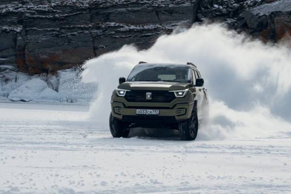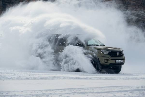 Кроме того, есть режим 4H — постоянный полный привод с распределением момента 50:50 — и пониженная передача 4L. Наконец, режим «Эксперт» позволяет опытным водителям на настоящем бездорожье задать персональные настройки и свести электронную подстраховку к минимуму. В нем мне особенно понравилось гонять по льду Байкала. Выбираю режим 4Н, спортивное усилие на руле, отключаю ESP, и дальше можно наслаждаться управлением на тонкой грани между своими скромными способностями и возможностями техники.